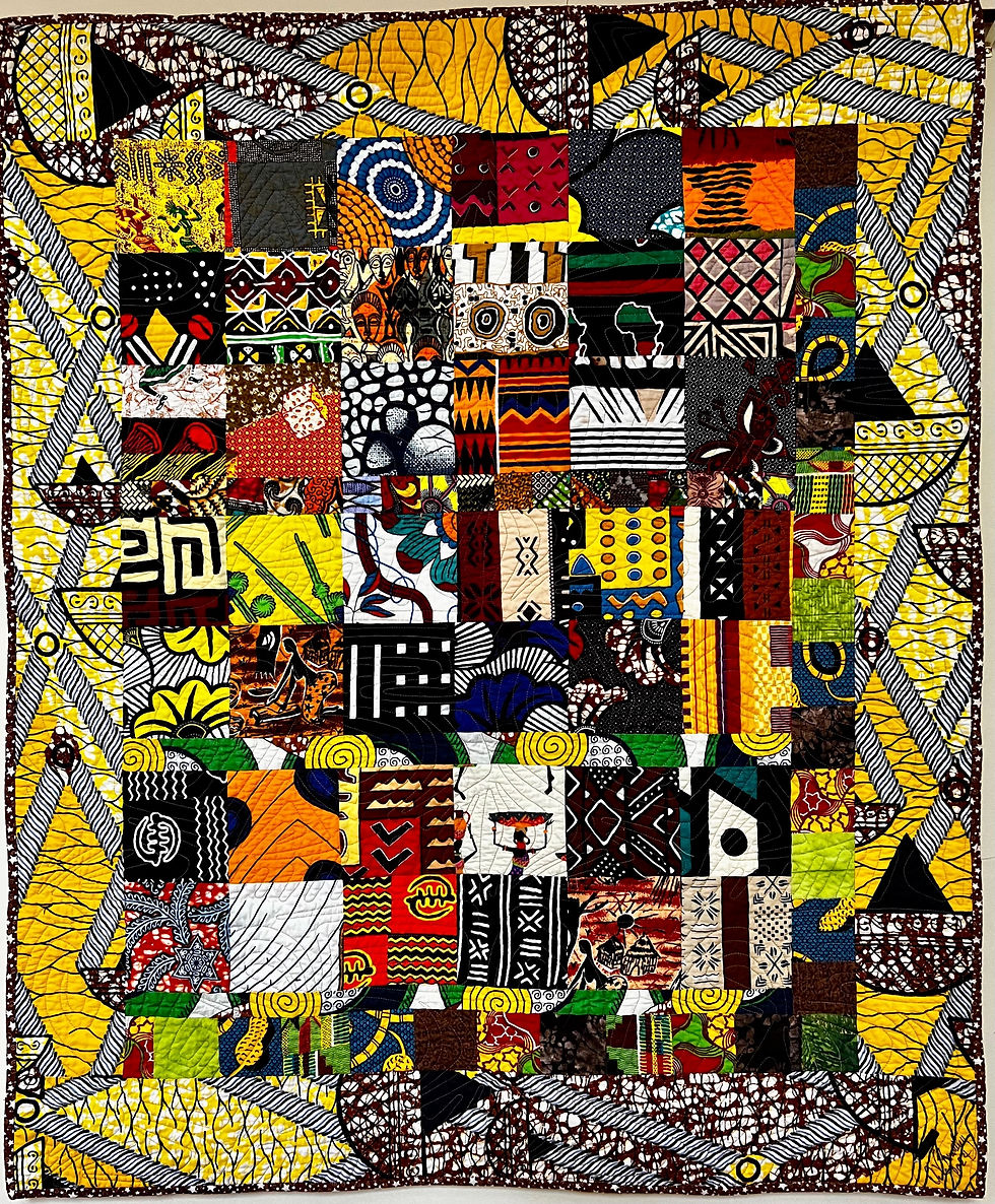 Like the other quilts in the series, The Happiness of Africa is a quilted wallhanging composed of a wide variety of African fabrics. It measures 38 x 42 inches.